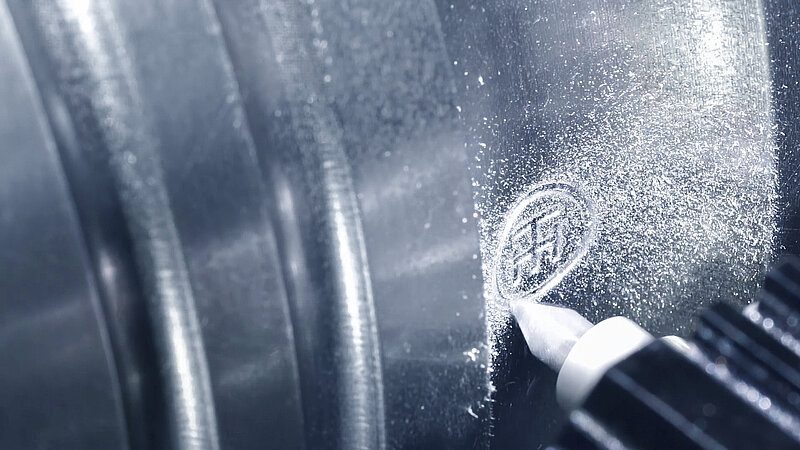 - Logo-Fräseinheit zum markieren Ihrer Spezifikation: Die Einheit ist in die Maschine integriert und die notwendigen Bewegungen werden durch die Maschinenachsen durchgeführt. Die Zahlen oder Buchstaben werden in der CNC-Steuerung programmiert, indem man die entsprechenden Daten auf dem Graphikbildschirm einträgt.