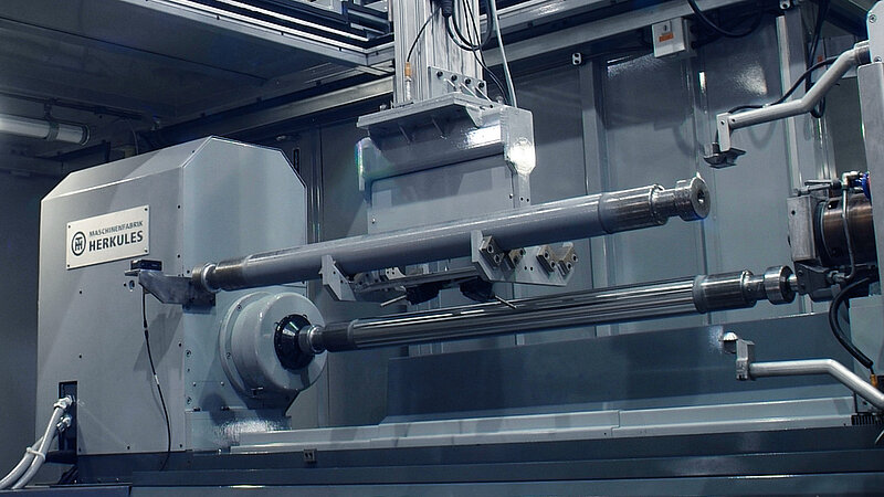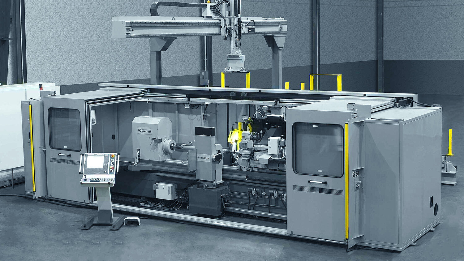 Maximale Produktivität, höchste Bearbeitungsqualität, volle Automation – mit diesen Vorteilen überzeugt das von Herkules entwickelte Bearbeitungszentrum für Walzen. Das innovative Bearbeitungszentrum besteht aus einer Schleifmaschine und einer integrierten Beladeeinrichtung für das automatische Be- und Entladen der Walzen inklusive des Transports von und zur Walzenpalette.
