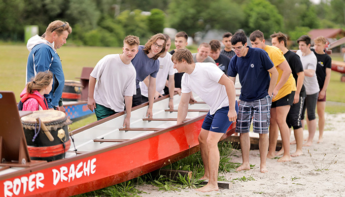 Nach dem gemeinsamen Mittagessen ging es für alle weiter zum Haselbacher See. Dort hieß es dann beim spannenden Drachenbootrennen: Siegen gegen Meuselwitz - Möge das bessere Team gewinnen! Nach einem engen Kopf-an-Kopf-Rennen holten die Azubis aus Meuselwitz den Sieg nach Hause. Zum Abschluss des ereignisreichen Tages wurde gemeinsam gegrillt, gelacht und gefeiert.